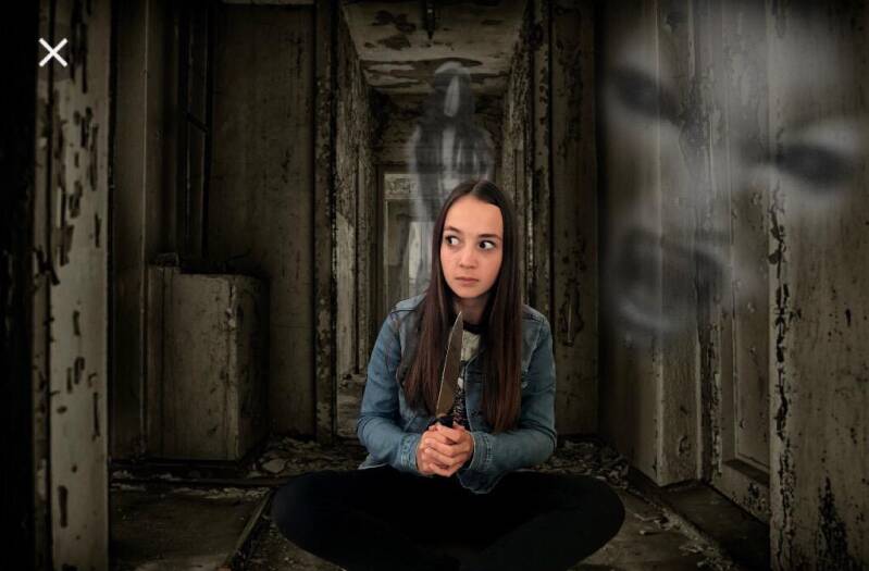 Scène 5: Op deze foto is de scène nagemaakt waarin Abby (Abbey Hoes) met een mes op de grond zat in het vakantiehuisje. De rest van de vriendinnen hoorden geluiden in het huis en gingen rondzoeken waarna ze Abby daar vonden. Abby zat daar, omdat ze bang was dat er een 'moordenaar' naar binnen zou komen en ze op deze manier zich probeerde te beschermen. Ik heb voor deze scène gekozen, omdat het laat zien dat er veel chaos en spanningen speelden in het vakantiehuisje. De vriendinnen waren, zoals op deze foto ook is nagemaakt, erg bang.